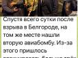 "Свіжа новина: мешканці Бєлґорода ще не відійшли від попереднього 1,5-тонного сюрпризу, як їм повідомили, що знайшли там же ще один, тільки нерозірваний", - пише політтехнолог Олексій Голобуцький на своїй сторінці у соцмережі "Фейсбук", передають Патрі...