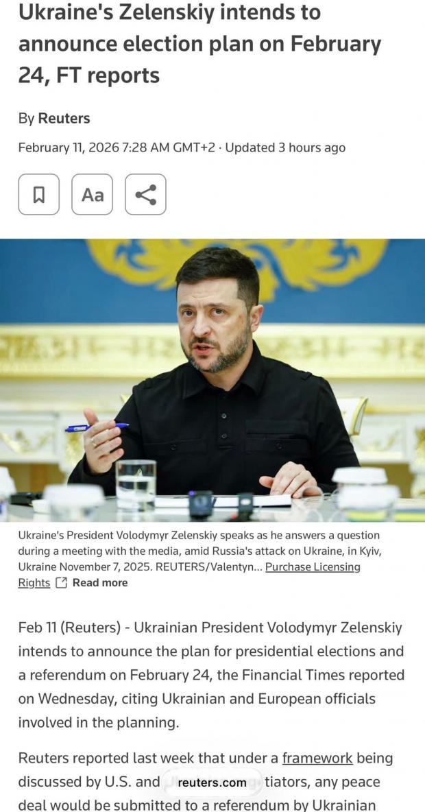 Мовляв, у березні буде досягнуто якийсь «піс діл», у травні буде похапцем проведено вибори — і про все це Володимир Зеленський буцімто має намір оголосити 24 лютого, на роковини вторгнення.